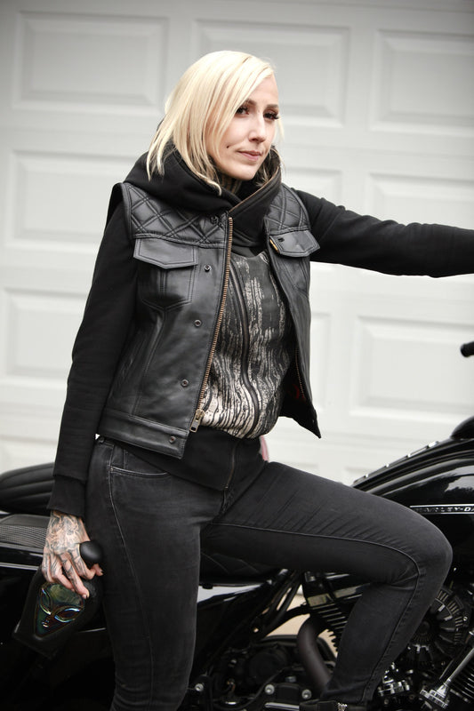 Women's Moto Vest - Black Leather/Black StitchRegular price $419.00 USDRegular priceUnit price per-