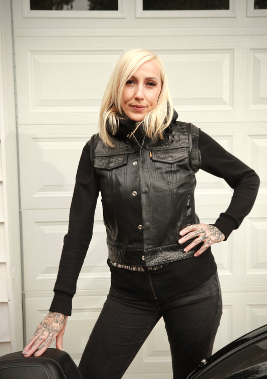 Women's Moto Vest - Black Gator LeatherRegular price $455.00 USDRegular priceUnit price per-